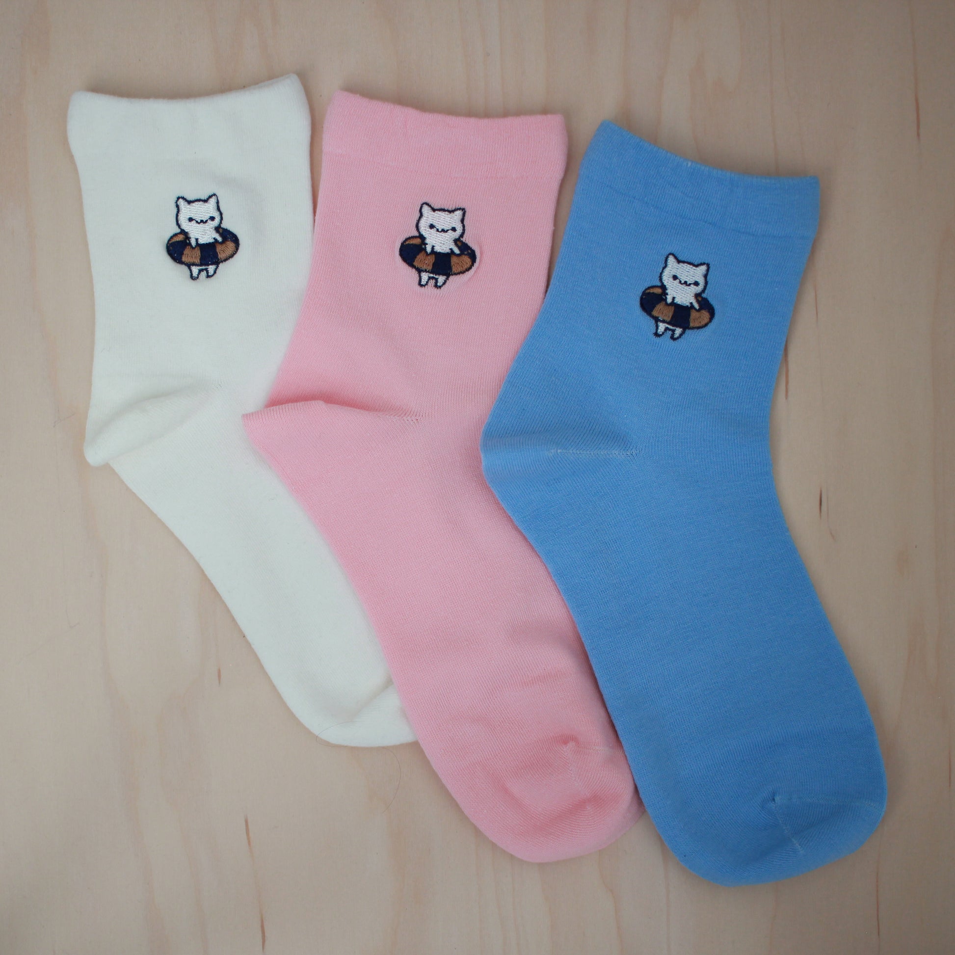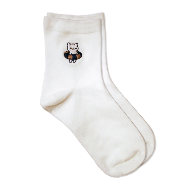 High quality embroidered Koneko on soft and stretchy socks that are the perfect ankle length.