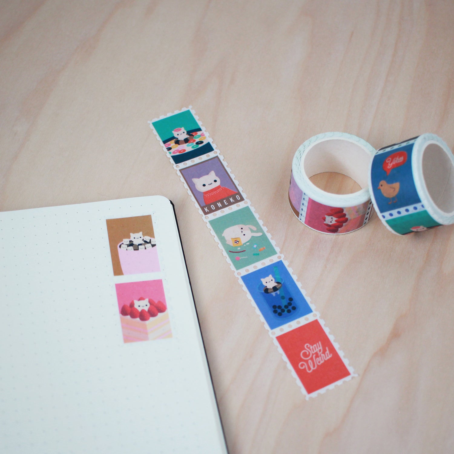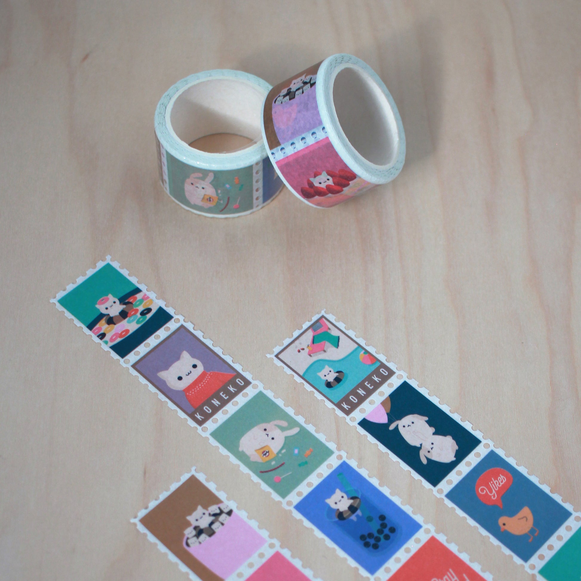 Use this fun Koneko washi tape to decorate your bullet journals, letters, scrapbooks, or other DIY crafts. You can use them individually or as a tape.