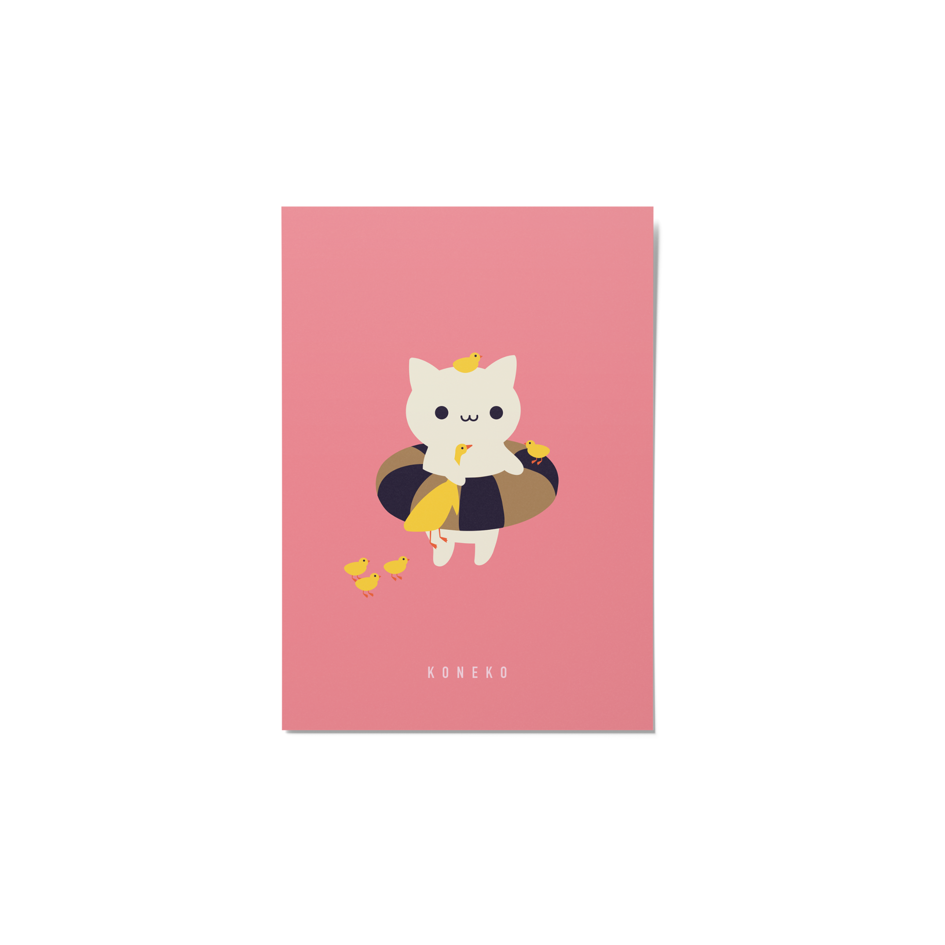 Add a pop of colour to your home with this cute illustration of Koneko and his new duck friends.