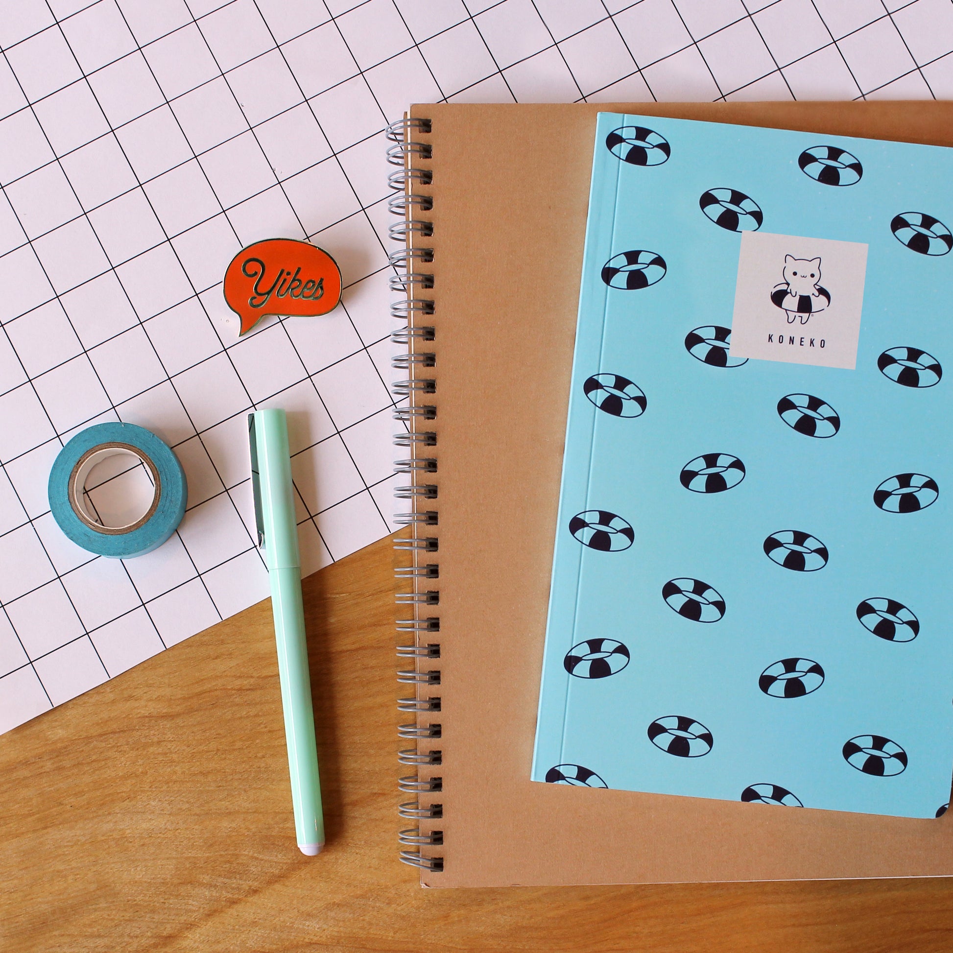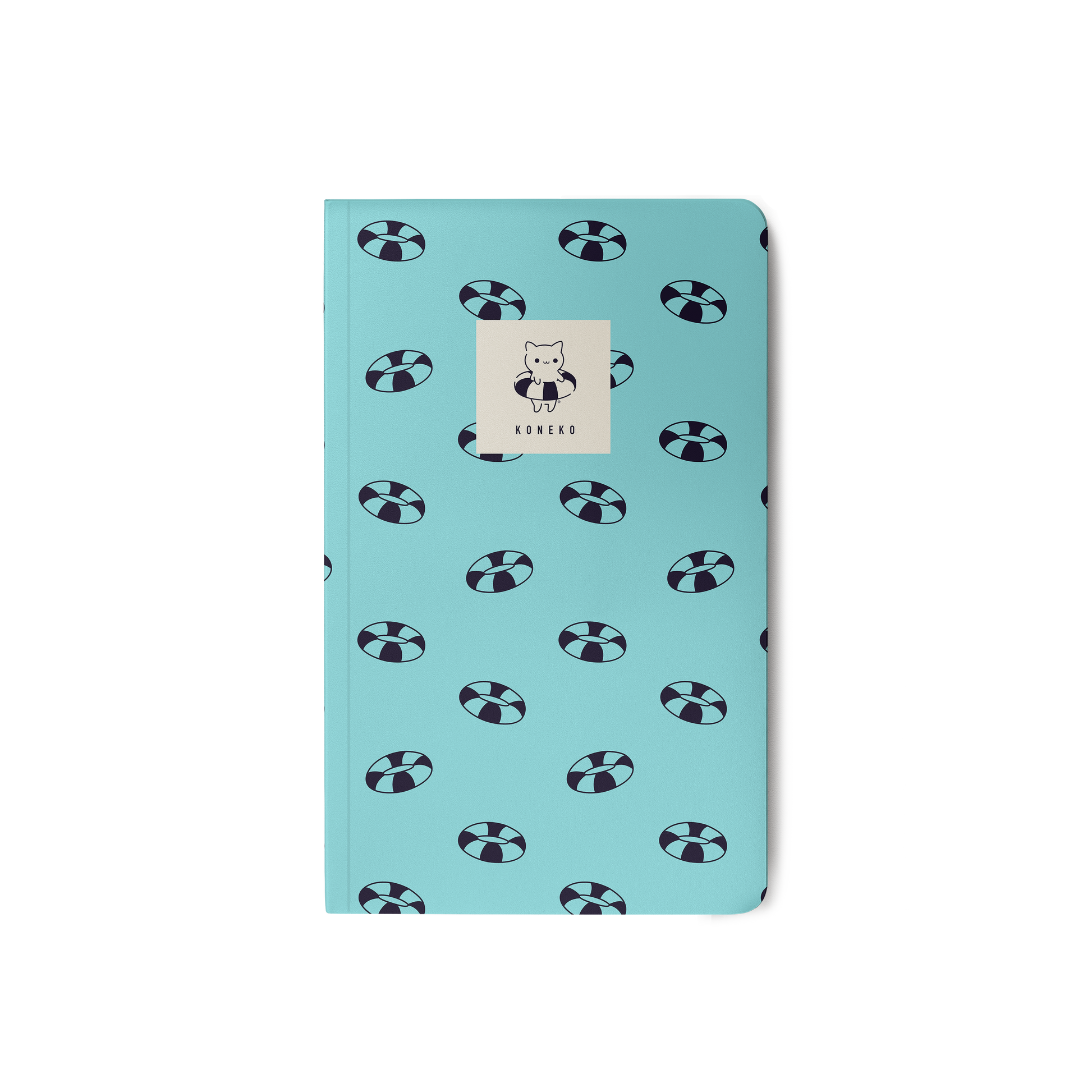 A soft cover notebook with a pool float pattern.