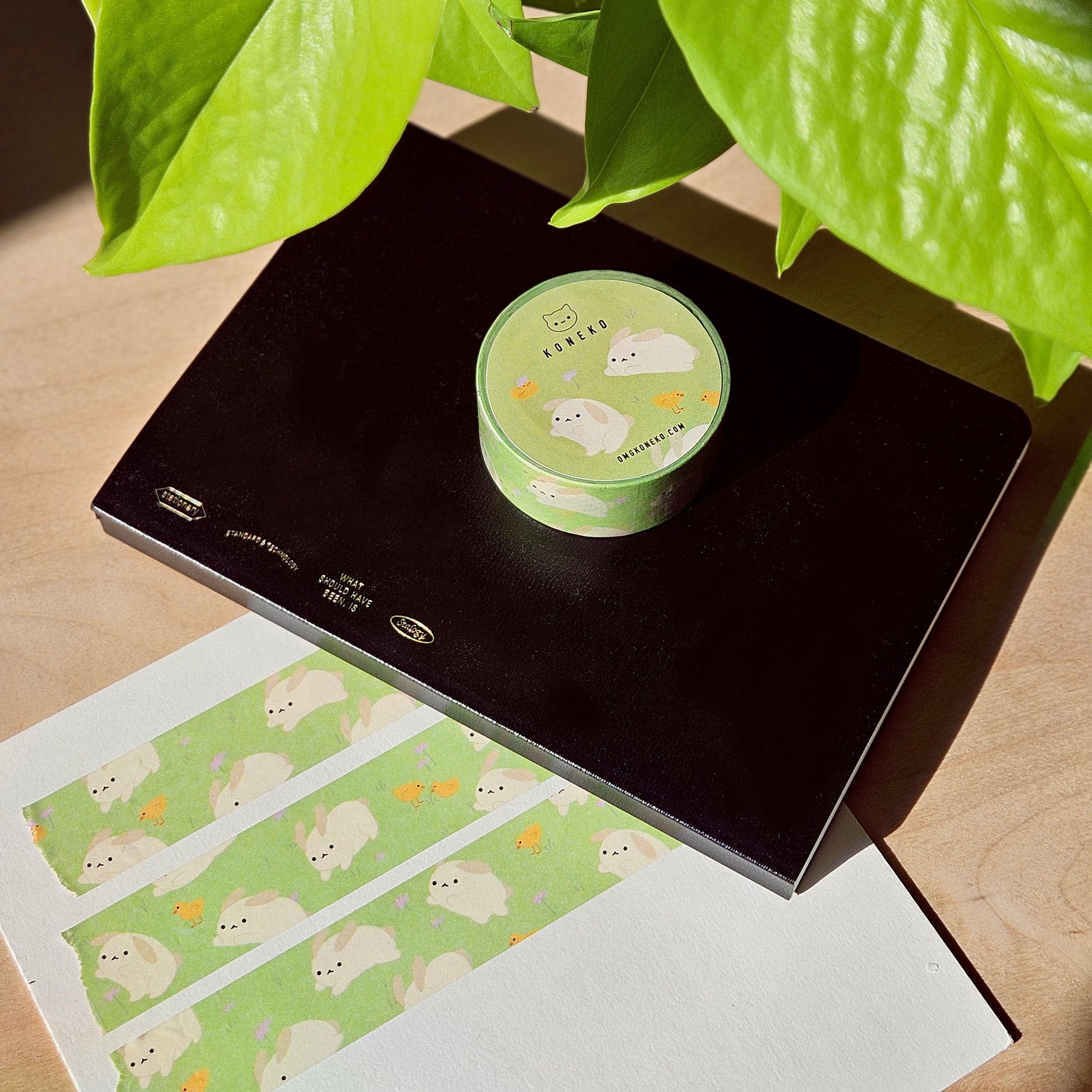 Use this washi tape of bunnies hopping, to decorate your bullet journals, letters, scrapbooks, or other DIY crafts.
